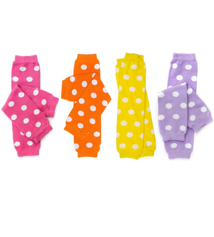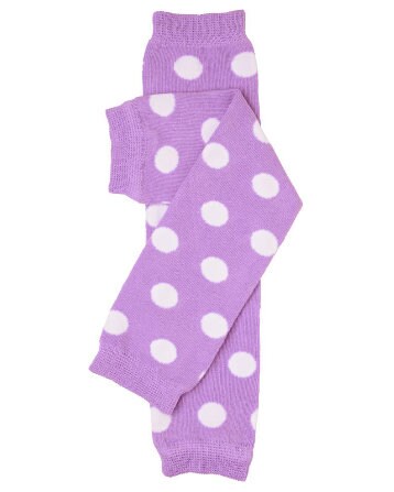 Soft and Comfortable lavender and white polkadot legwarmers! Available in 2 sizes newborn and "one size" and are perfect for newborns, infants, toddlers and children.