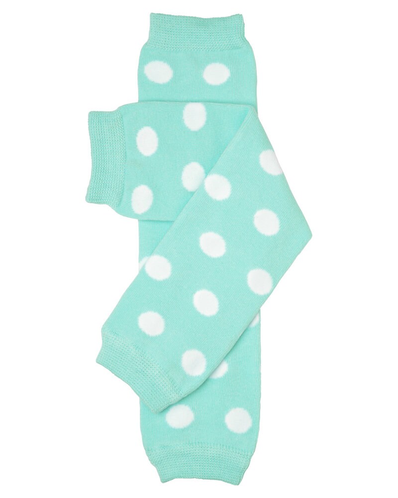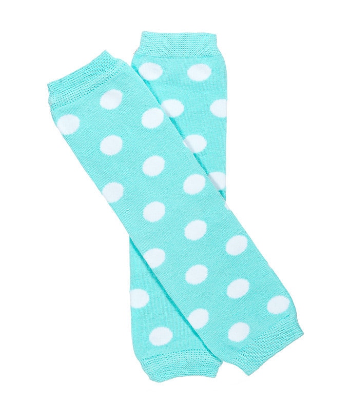 Soft and Comfortable aqua blue and white polkadot legwarmers! Available in 2 sizes newborn and "one size" and are perfect for newborns, infants, toddlers and children.
